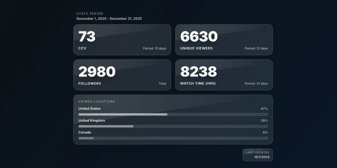 Your StreamerSync site can take up to 4 weeks to build, design, brand and test, depending on your customisation and requirements. If all information, designs and branding are not received during the onboarding process, this may take longer. Your Twitch stats are refreshed every month based on your update form to keep your page up-to-date.